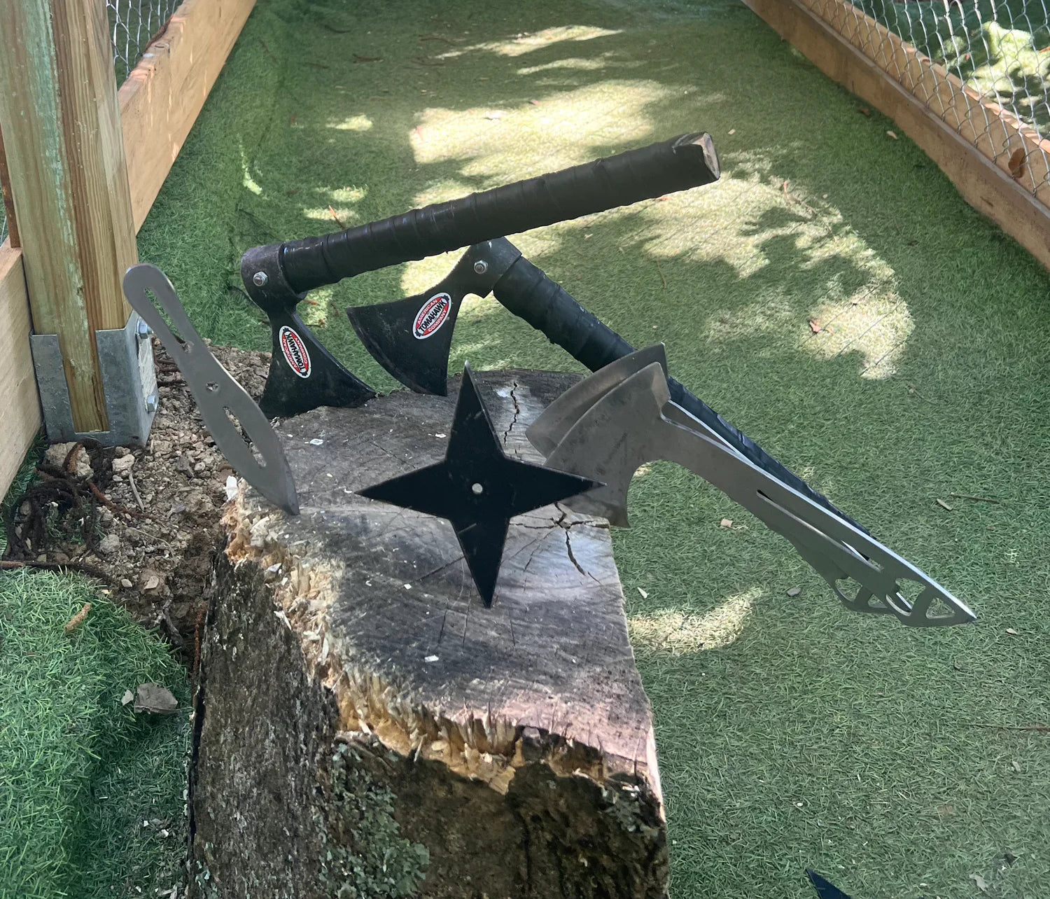 Sport tout droit venu du Canada, le lancer de haches allie précision et concentration. Le but étant de planter vos haches sur une cible en bois située à 4m en marquant le plus de points.